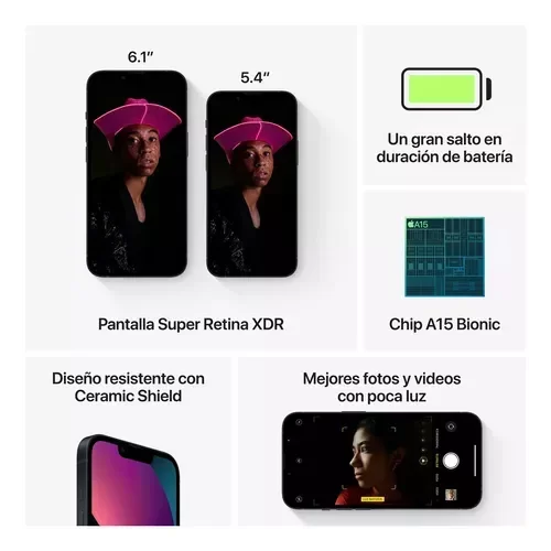 El iPhone 13 es un celular que combina lo último en tecnología con un diseño elegante y duradero. Con su pantalla más brillante, cámara dual avanzada para fotos y videos espectaculares, y un rendimiento ultrarrápido, es ideal para quienes buscan un smartphone de alto rendimiento ¡Descubre el equilibrio perfecto entre innovación y estilo con el iPhone 13!
