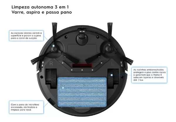 Modos de limpiezaFunção focus;função random;função zig-zagFunciones adicionales de limpiezaAspirar, Barrer, passar pano