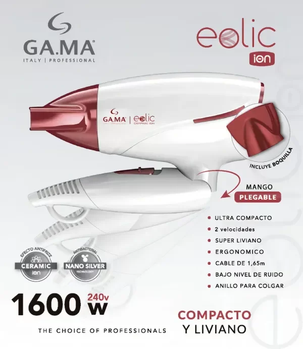 Consigue un secado perfecto y cuida tu cabello con el Secador de pelo GA.MA Italy Eolic Ceramic Ion en color blanco. Este secador profesional de 1600 W de potencia te ofrece un rendimiento excepcional y resultados de salón en la comodidad de tu hogar. Gracias a su tecnología iónica y cerámica, reduce el frizz y protege tu cabello del calor, dejándolo suave y brillante. Además, cuenta con 2 velocidades para adaptarse a tus necesidades y es silencioso, permitiéndote disfrutar de una experiencia de secado agradable. No esperes más para lucir un cabello espectacular con el Secador de pelo GA.MA Italy Eolic Ceramic Ion.