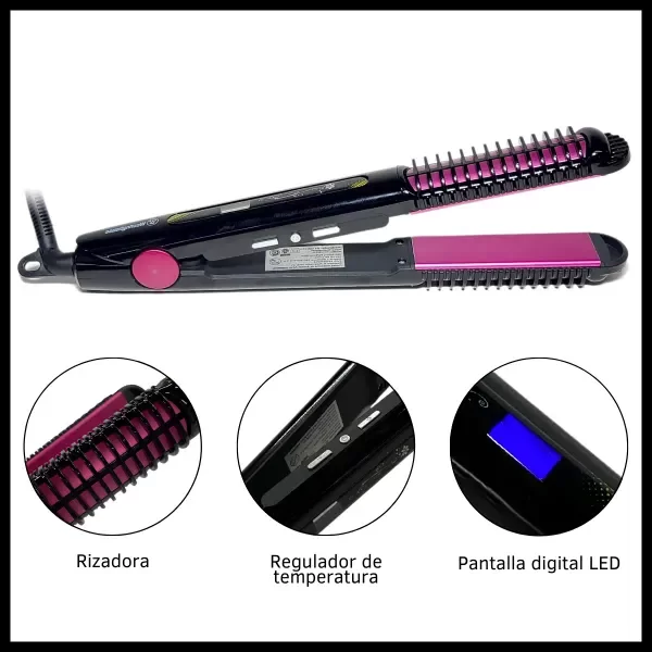 La Planchita de Cabellos WHHS3232 de Westinghouse es la herramienta perfecta para lograr un peinado profesional en la comodidad de tu hogar. Este innovador dispositivo 2 en 1 combina las funciones de alisador y rizador, permitiéndote crear una variedad de estilos con facilidad. Con una temperatura ajustable que va desde 80 hasta 210 °C, puedes personalizar el calor según tu tipo de cabello, asegurando resultados óptimos en todos los casos. Su pantalla digital LED facilita la visualización de la temperatura seleccionada. Además, cuenta con un cable giratorio de 360° que proporciona libertad de movimiento durante su uso. La seguridad también es una prioridad, ya que incluye un sistema de apagado automático. Fabricada con placas de cerámica, garantiza un deslizamiento suave y un acabado brillante. Ideal para quienes buscan versatilidad y calidad en su rutina de peinado. ¡Transforma tu look con la Planchita WHHS3232!
