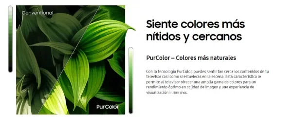 - La tecnología PurColor permite al televisor mostrar una gama de colores amplia, optimizando la calidad de imagen para una experiencia de visualización envolvente.