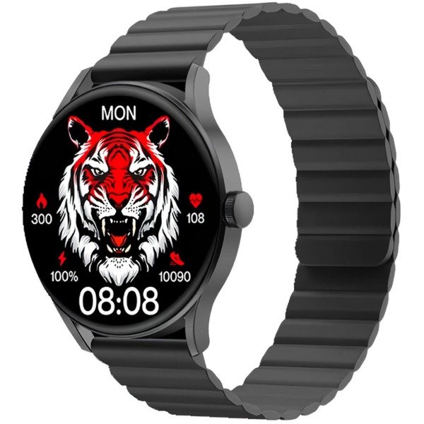 El reloj viene con correa magnética negra + correa de silicona negra.