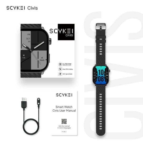 - Impermeable: SCYKEI Civis está diseñado con una clasificación de impermeabilidad IP68, lo que garantiza su resistencia contra los desafíos cotidianos como lavarse las manos, las gotas de lluvia y el sudor. Puede usar su reloj mientras nada en una piscina.